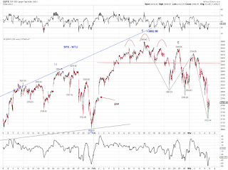 Chart 2 - However, support has held and SPX rebounded vigorously Friday. SPX could be in the final zigzag up of an expanding diagonal (green C(Y))